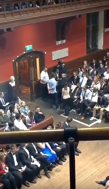 The treatment of Ebenezer Azamati at Oxford University’s Oxford Union meeting is disgusting. Absolutely. Totally. There’s no excuse for the treatment he had. Its fully understandable what he was doing. Pictures of the debating room at the time shows the Oxford Union debating room very tightly packed and that first of all is a major problem, even for someone like me as it was for Ebenezer Azamati.