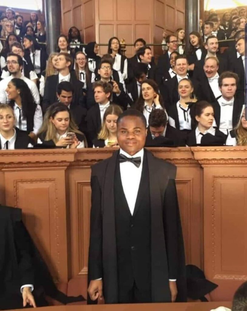 The brilliant young talented blind Oxford student Ebenezer Azamati at a university ceremony. Source: Twitter. The Tweet post has now been deleted.