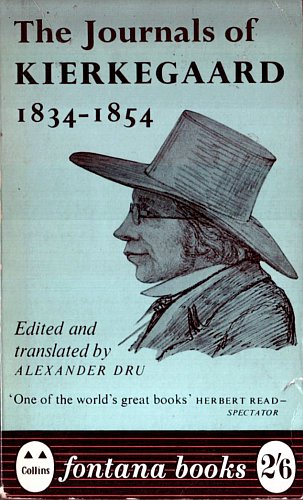 The Journals of Kierkegaard 1834-1854 translated by Alexander Dru. These journals reflect the two stages of K’s life, he first being where he penned under pseudonyms such as Hilary Bookbinder, Watchman of Copehagen (Vigilius Haufniensis), Anti-Climacus and many others, the second stage where he came out of his shell, began using his real name and openly attacked the church for being a false institution. Alexander Dru was a noted translator of Kierkegaard’s works. The book was first published by the OUP in 1938 with this version by Fontana in 1960. Note the quote by Herbert Read, ‘One of the world’s greatest books.’
