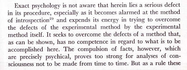 His view is phenomenology alone can explain things properly and thus brings us to the old chestnut whether psychology is actually a science. Husserl says psychological experiments simply are a defective means of analysis because these experiments must by nature be experiments into themselves. Husserl was expert at pointing out the many problems of analysing existence and influenced most existentialists.