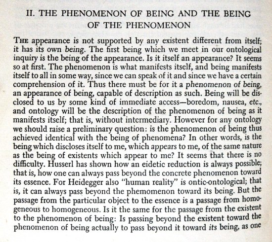 Each of the existentialist masters during the 1920s to 1940s had their own dedicated interpretations of what it meant to be in existence but invariably run into philosophical conundrums problems which take a lot of time to explain, but never quite fully satisfactorily. Many of the early existentialist books from those years were essentially tomes, hundreds of pages long, Sartre included. My 1966 copy of Being and Nothingness amounts to nearly 700 pages, excluding the lengthy introduction by Hazel Barnes.