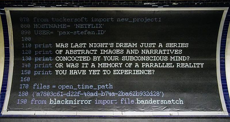 Black Mirror/Bandersnatch ads on the Northern Line. Source: Twitter.