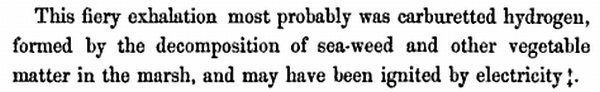 It does at first glance seem a fairly likely explanation. Yet the notion that it was ignited by electricity bears some suspicion. Gaseous vapours concentrated together (say in a closed room) can be ignited by a spark, which is why undetected gas leaks can cause houses to go up with a bang. Out on the sands in wide open air it would have had to have been an extremely concentrated mixture to cause the effects so described. Perhaps some unknown factor rendered the elements in the air far more volatile than usual.